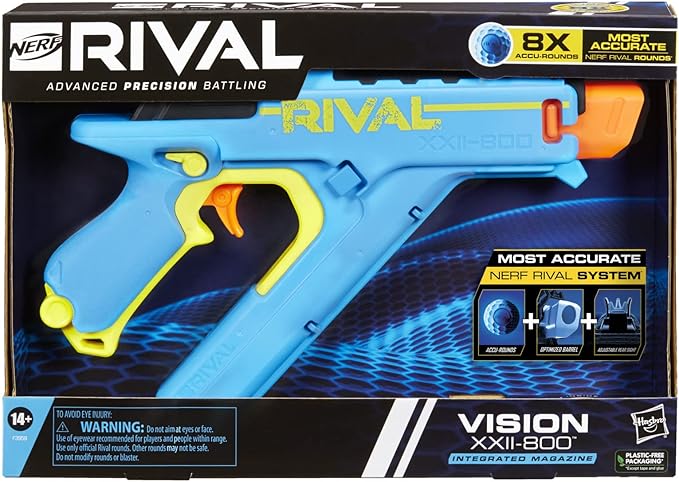NERF Rival Vision XXII-800 Blaster, Most Accurate Rival System, Adjustable Sight, Integrated Magazine, 8 Rival Accu-Rounds