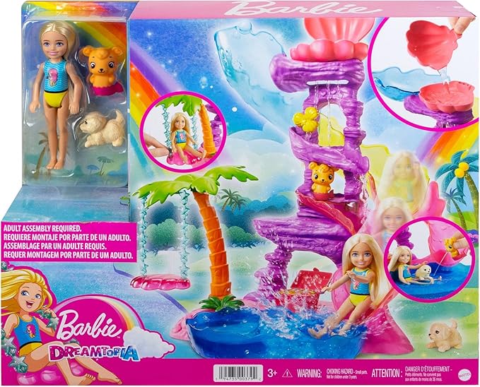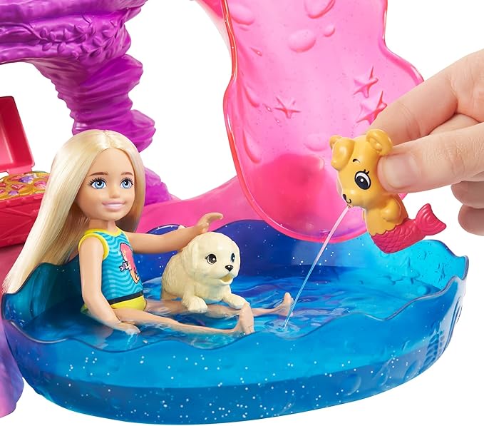 Barbie Dreamtopia Chelsea Water Lagoon Playset with Chelsea Doll (6 in Blonde), 2 Pets, Slide, Pool & Swing, Gift for 3 to 7 Year Olds