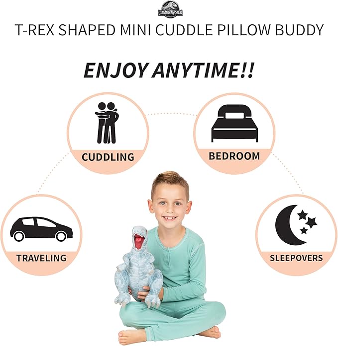 Franco Kids Bedding Super Soft Plush Mini Cuddle Pillow Buddy, One Size, Jurassic World Blue T-Rex