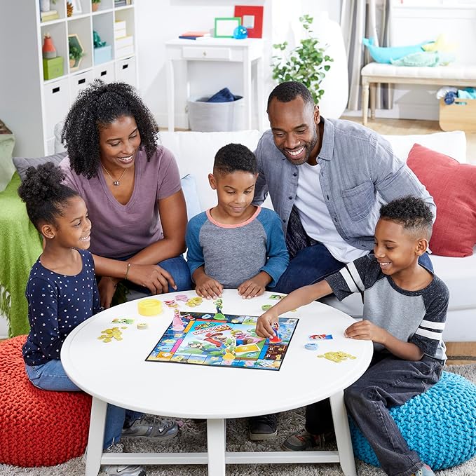 Monopoly Junior Super Mario Edition Board Game, Fun Kids' Ages 5 and Up, Explore The Mushroom Kingdom as Mario, Peach, Yoshi, or Luigi (Amazon Exclusive)