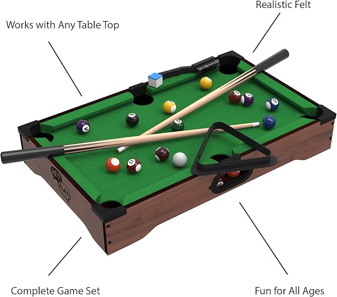 Mini Pool Table - 20-Inch Portable Tabletop Billiards Game with Cue Balls, Sticks, Chalk, Brush, and Triangle Rack - Table Games by Hey Play
