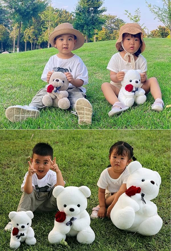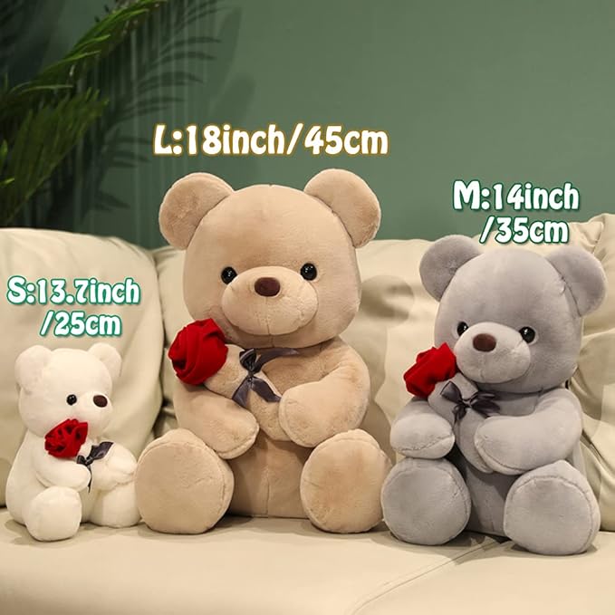 Teddy Bear Plush Stuffed Animal,Cute Teddy Bear with Rose,Sweet Rose Bear Gift for Your Loved One, Teddy Bear for Girlfriend Kids Birthday, Valentine, Christmas(13.7 inches, White)