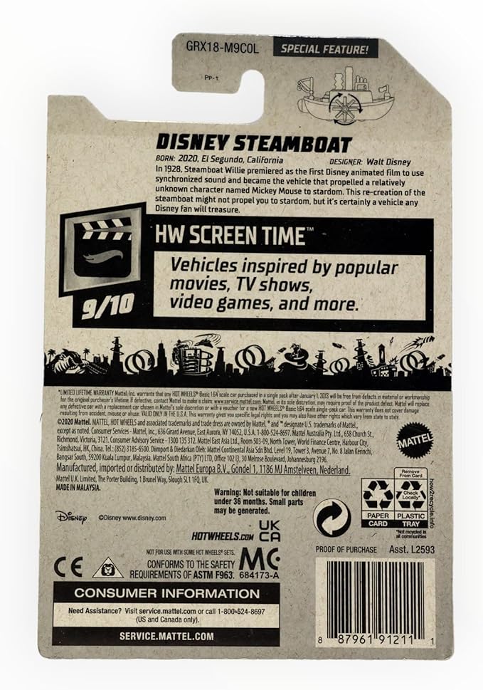 Hot Wheels Disney Steamboat, [White/Black] 193/250 Screen Time 9/10