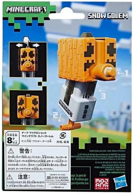 Nerf Microshot Minecraft Snow Golem Mini Blaster, Minecraft Snow Golem Mob Design, 2 Official Nerf Elite Darts with Priming Handle F6132