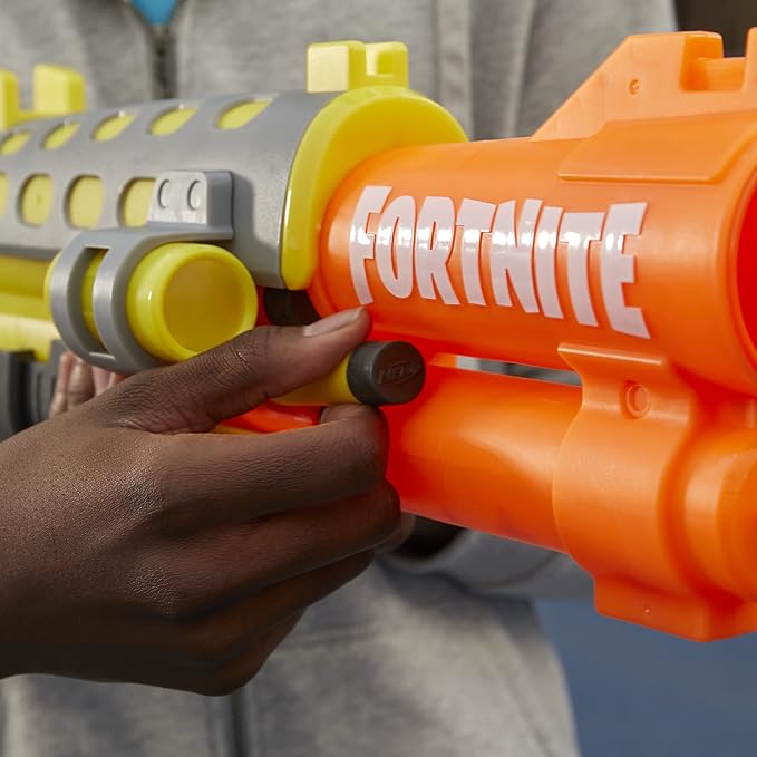 Nerf Fortnite Legendary TAC Dart Blaster, Yellow Glow Lap Design, 6 Dart Mega Drum and 6 Nerf Accustrike Mega Darts, Pump Action F4168