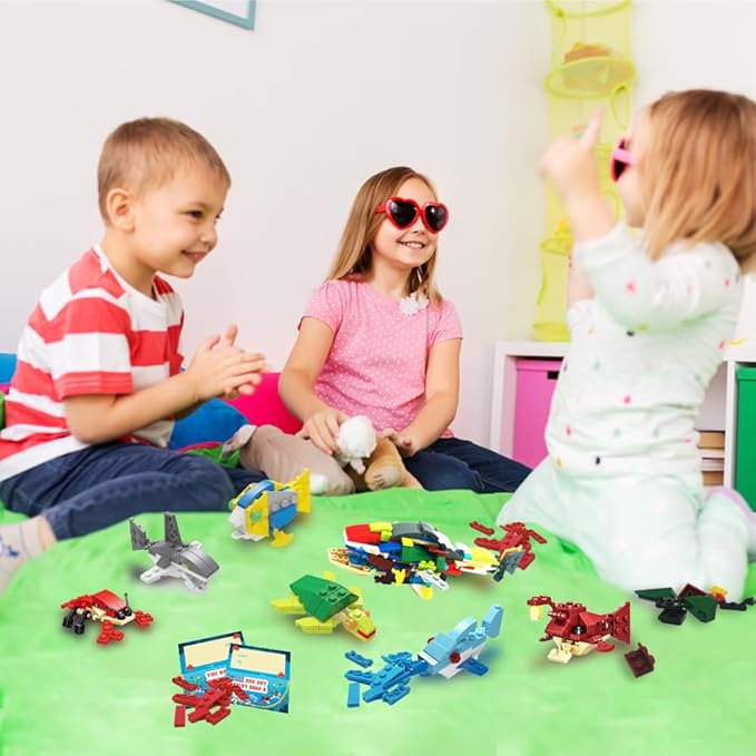WODMAZ Valentines Day Cards with Sea Animal Building Blocks, 24 Packs Valentine Gift Ocean Building Toys Set for Kids Classroom Party Favor, Valentine Gift Exchange, Valentine’s Greeting Cards