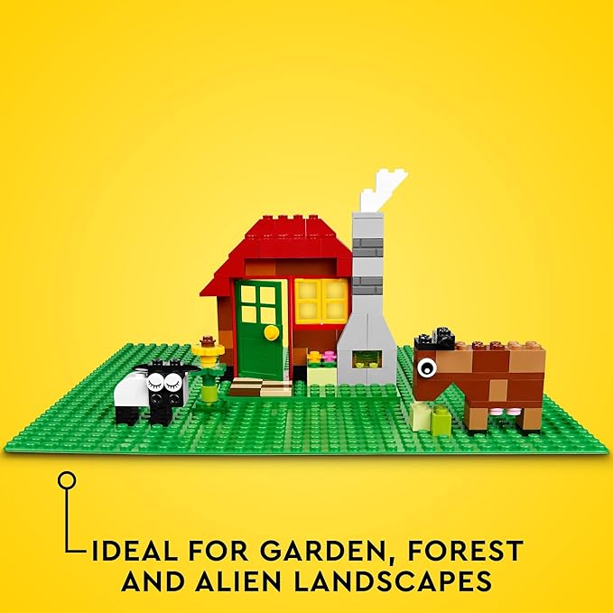 LEGO Classic Green Baseplate, Square 32x32 Stud Foundation to Build, Play, and Display Brick Creations, Great for Grassy Nature Landscapes, 11023