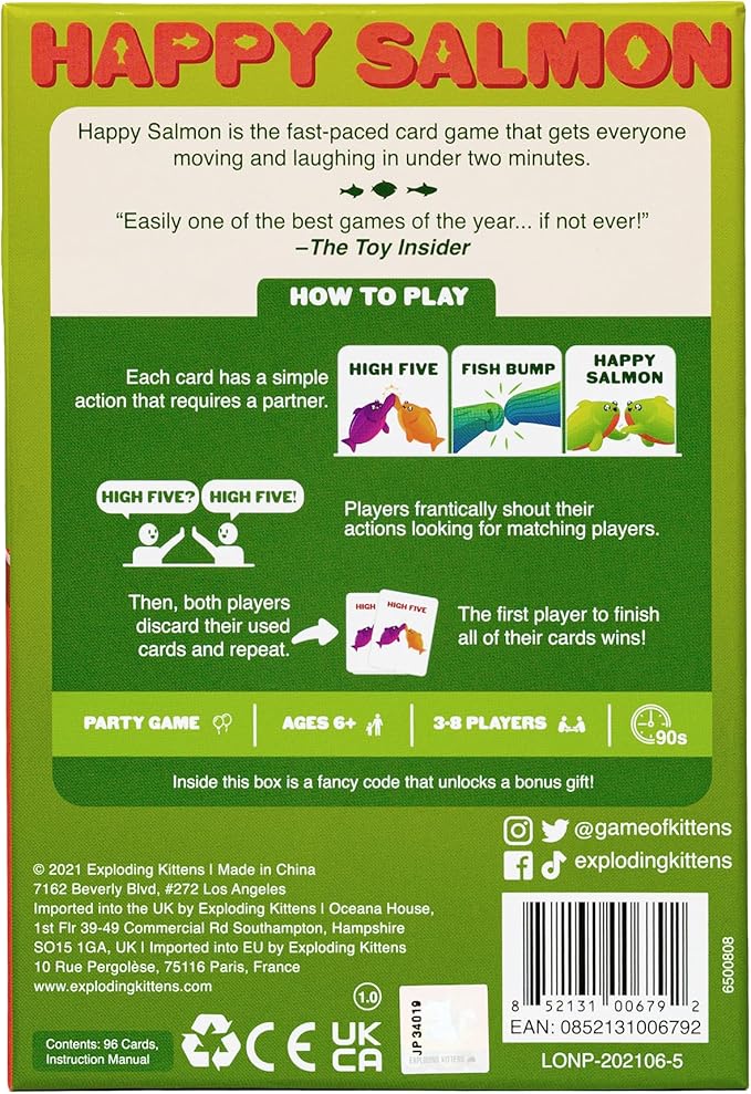 Exploding Kittens Happy Salmon 3-8 Players - Ages 6+ - 90 Second Rounds - Easy to Learn Quick Matching Card Game - Party Game, Family Game Night, Kid and Adult Card Game