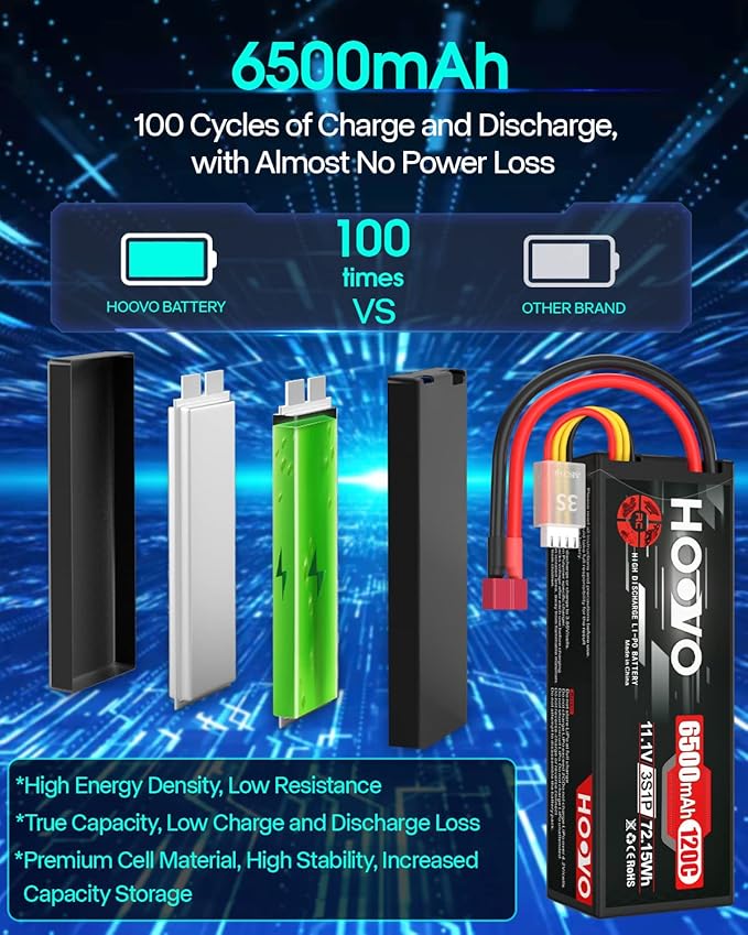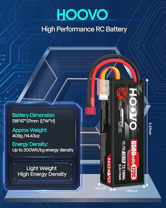 HOOVO 3S Lipo Battery 11.1V 6500mAh 120C Hard Case with Deans T Plug for RC Vehicles, RC Car Truck, RC Quadcopter, Helicopter, RC Boat, DJI Airplane, LOSI Associated Racing Hobby (2 Packs)