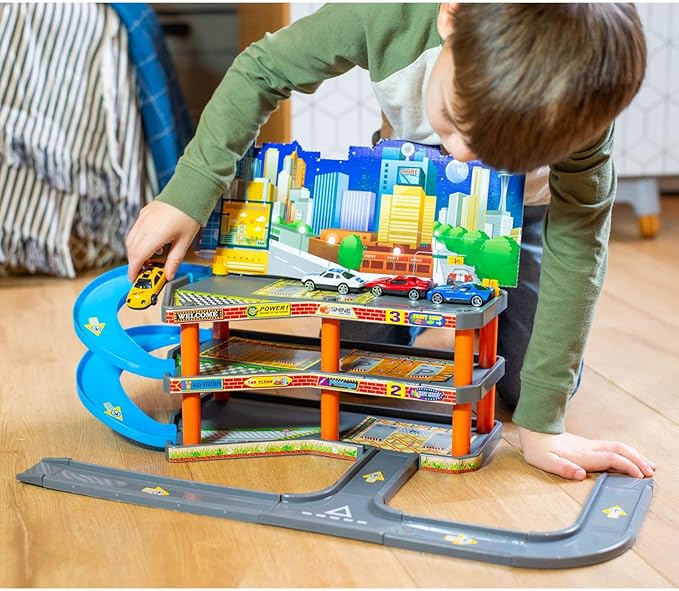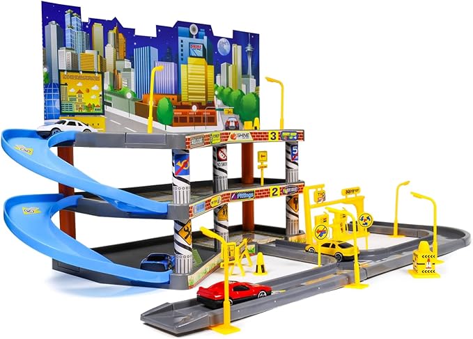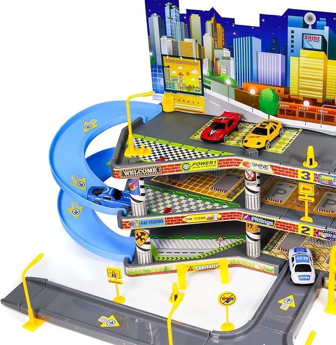 About This DELUXE TOY CAR GARAGE DIECAST PLAY SET: Kids can recreate the hustle and bustle of a busy city... Read more