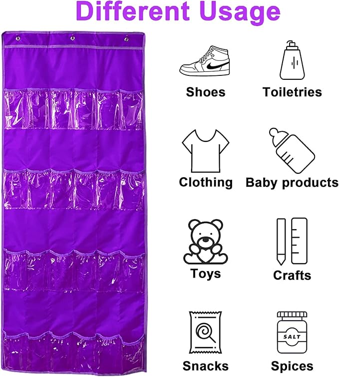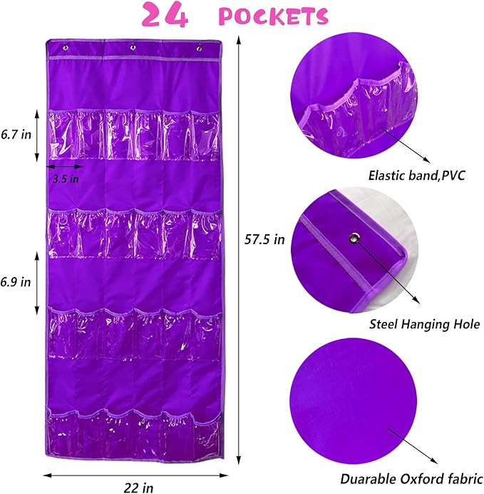 Hanging Over Door Toy Storage Organizer with 24 Clear View Pockets, Ideal for Lol Omg Dolls Barbie Dolls Surprise Doll, Cars and More Collectibles‘s Storage, Best Gift for Girls (Purple)