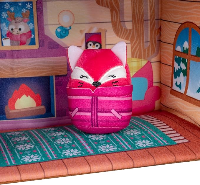 Squishville by Original Squishmallows Ski Chalet - Includes Four 2-Inch Skis, Snowboard, Snowman, Chair, Bed, and Playscene with Ski Slope - Amazon Exclusive