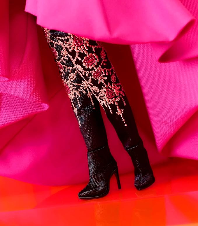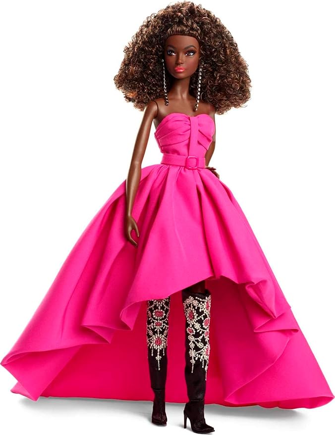 Barbie - Fuchsia Long Dress Doll in Taffeta with Sweetheart Neckline with Pleats and Gathering Details, Matching Belt and a Wide Train, Adult Toy, HBX96