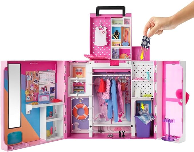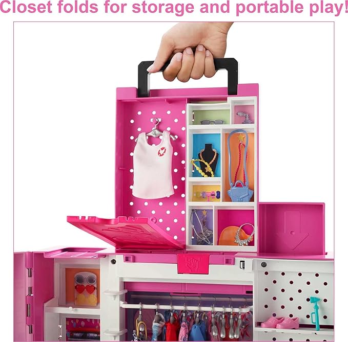 Barbie Dream Closet Playset with 35+ Doll Clothes & Accessories, Includes 5 Complete Looks, Pop-Up Second Level, Mirror & Laundry Chute