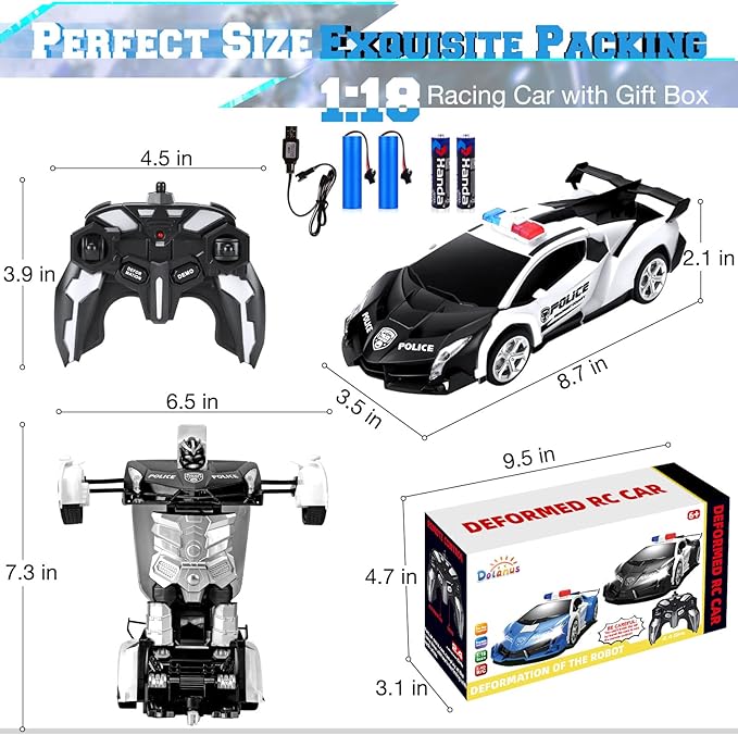 Dolanus Remote Control Car - Transform Robot RC Cars Contains All Batteries: One-Button Deformation and 360 Degree Rotating Drifting, Present Christmas Birthday Gift for Boys/Girls