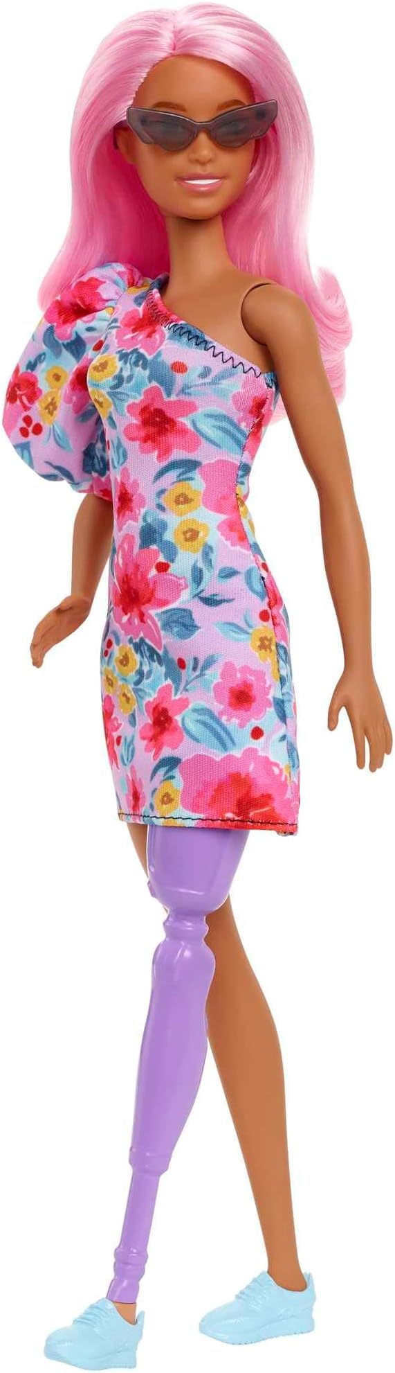 Barbie Fashionistas Doll #189 with Pink Hair & Prosthetic Leg Wearing Floral Dress & Accessories Including Sneakers & Sunglasses