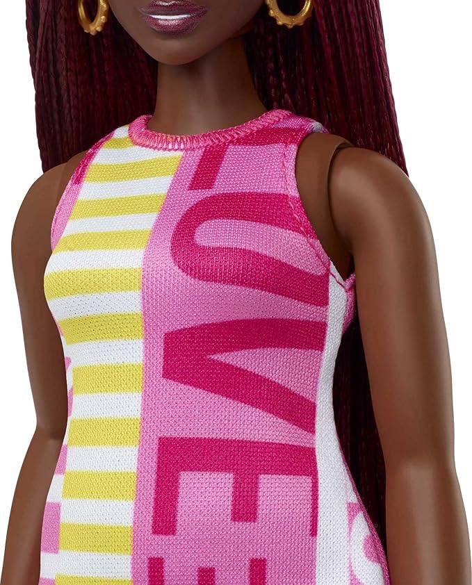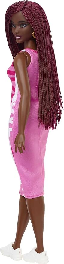Barbie Fashionistas Doll #189, Curvy with Crimson Braids, Sleeveless Love Dress & Accessories Including Sneakers & Hoop Earrings