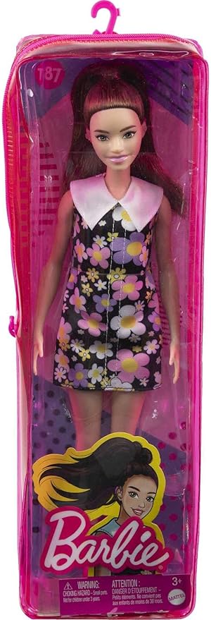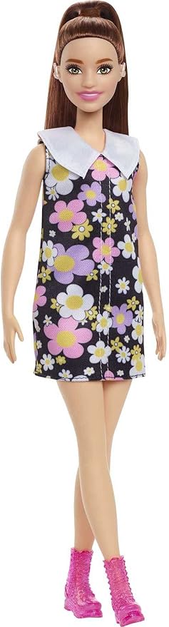 Barbie Fashionistas Doll #187 with Behind-the-Ear Hearing Aids, Brunette Ponytail, Shift Dress & Pink Boots