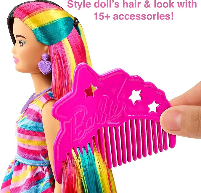 Barbie Totally Hair Doll, Heart-Themed with 8.5-inch Fantasy Hair & 15 Styling Accessories (8 with Color-Change Feature)