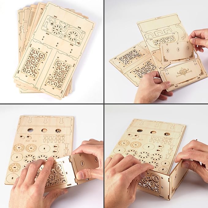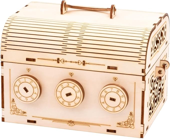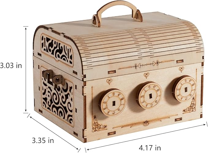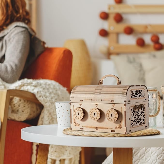 3D Wooden Puzzle DIY Treasure Box Model Building Kits Brain Teaser Educational Toy Birthday Gift for Adults and Kids Age (Treasure Box)