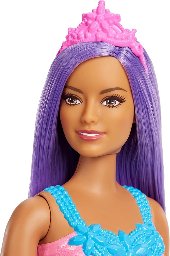 Barbie Dreamtopia Royal Fashion Doll with Curvy Body, Purple Hair & Sparkly Bodice Wearing Removable Skirt, Shoes & Headband Accessory