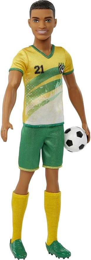 Barbie Careers Ken Fashion Doll & Accessory, Soccer Player with Short Cropped Hair, #21 Uniform, Tall Socks, Cleats & Ball
