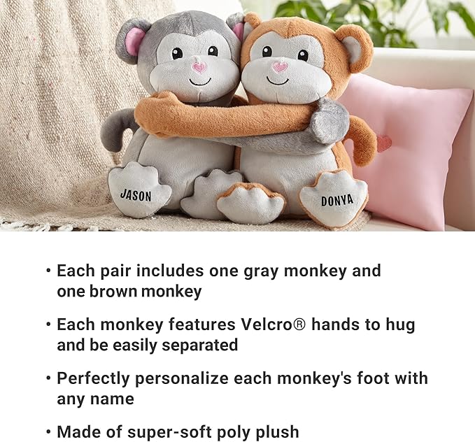 Let's Make Memories Personalized Hugging Plush Monkeys - Monkey Business - Monkey Stuffed Animal - for Couples - for Him - for Her