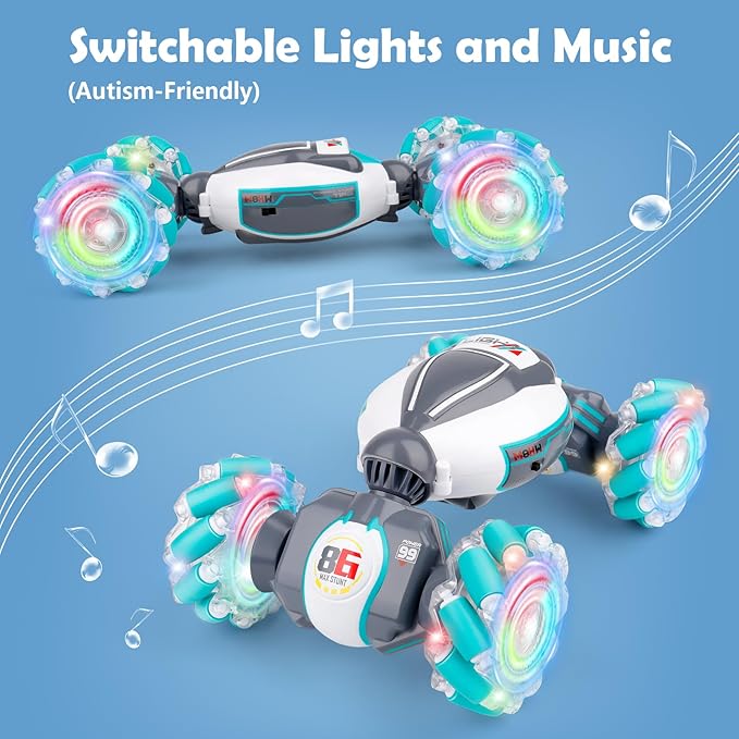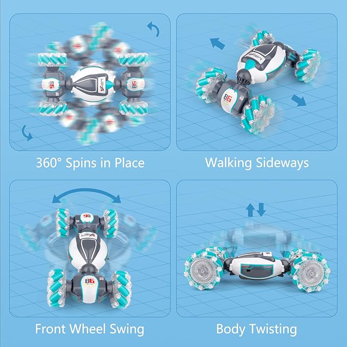 PREPOP Gesture Sensing RC Stunt Car, Birthday for Age 6 7 8-12 13+ Year Old Boys - Cool Toys for Kids, Hand Controlled Remote Control Twist Vehicle with Lights & Music, 4WD Rotating