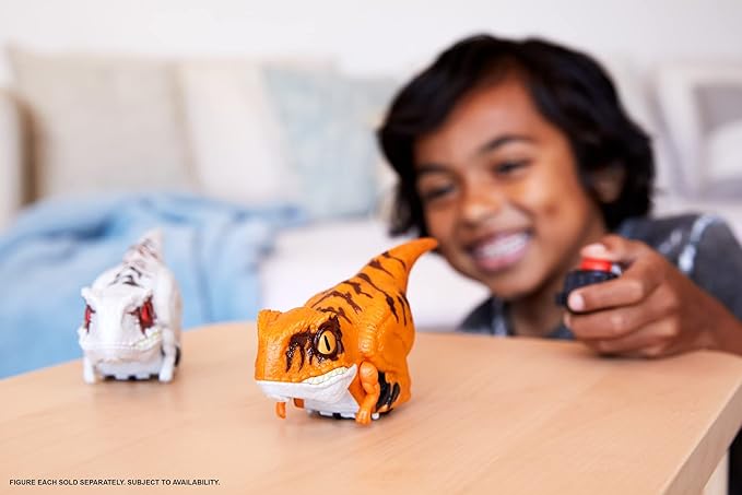 Mattel Jurassic World Dominion Uncaged Dinosaur Toy with Chomp Motion & Roar Sound, Rowdy Roars Atrociraptor Tiger Dino Action Figure