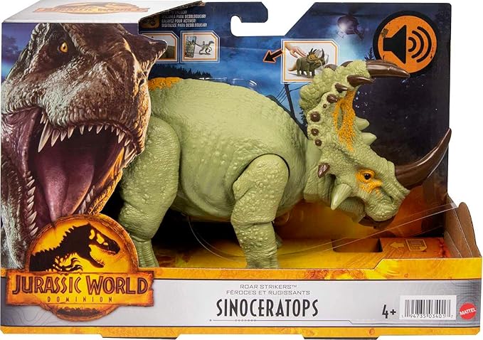 Mattel Jurassic World Dominion Roar Strikers Dinosaur Action Figure with Roaring Sound & Attack Action, Sinoceratops Dino Toy Includes Downloadable App & AR