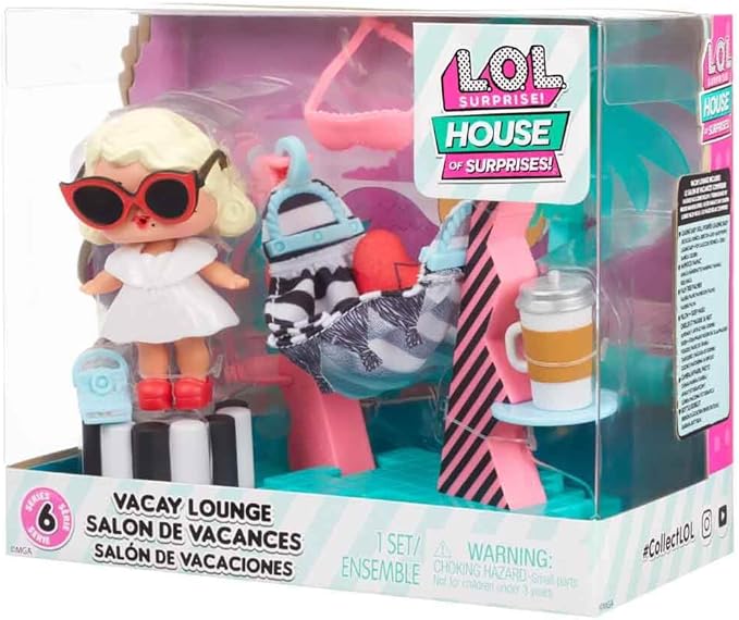 L.O.L. Surprise! OMG House of Surprises Vacay Lounge Playset Leading Baby Collectible Doll with 8 Surprises, Dollhouse Accessories, Holiday Toy, Great Gift Kids Ages 4 5 6+ Years Old & Collectors