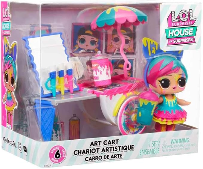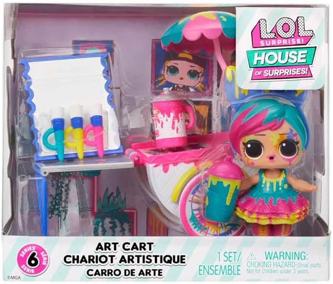 L.O.L. Surprise! OMG House of Surprises Art Cart Playset with Splatters Collectible Doll and 8 Surprises, Dollhouse Accessories, Holiday Toy, Great Gift for Kids Ages 4 5 6+ Years Old & Collectors