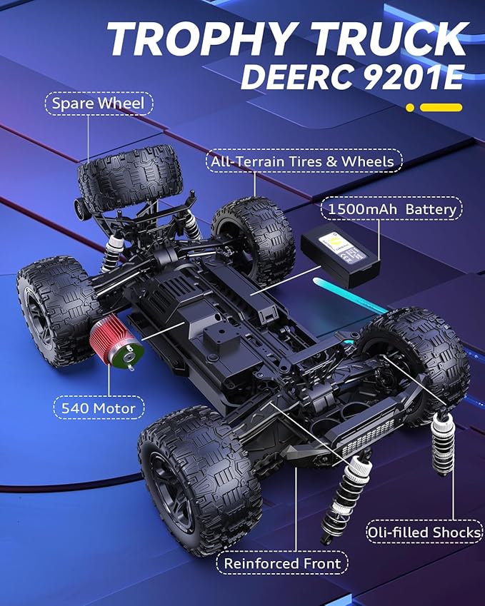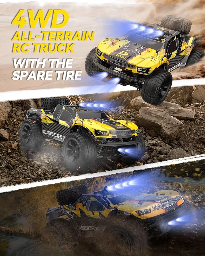 DEERC 9201E 1:10 Large Remote Control Truck with Lights, Fast Short Course RC Car, 48 km/h 4x4 Off-Road Hobby Grade Toy Monster Crawler Electric Vehicle with 2 Rechargeable Batteries for Adult Kid Boy