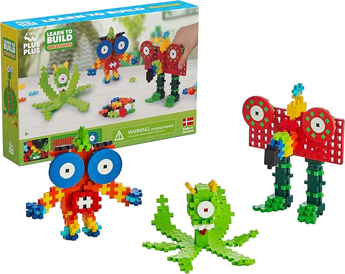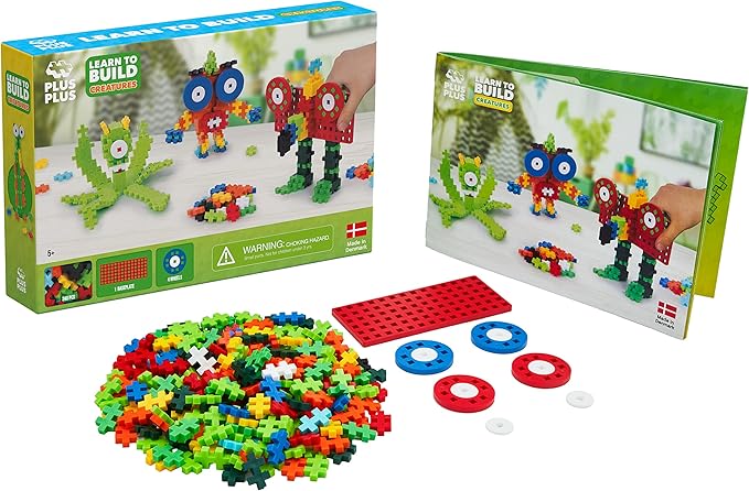 PLUS PLUS Learn to Build Set, Interlocking Mini Building Blocks, 3D Puzzle Construction Stem Toy for Kids - Creatures, 240 Pieces