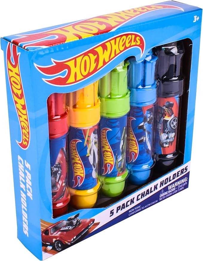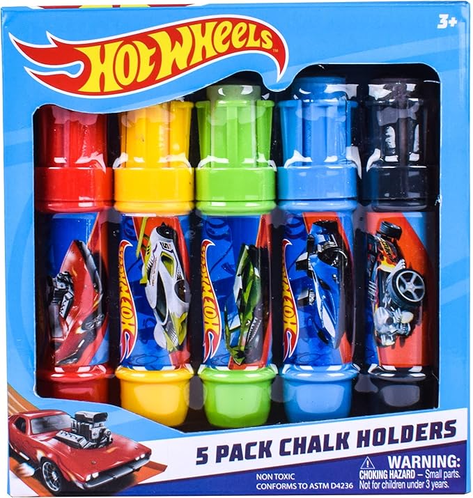 Sunny Days Entertainment Hot Wheels™ Jumbo Chalk Holders | 5 Chalk Sticks with Holders for Kids | Sidewalk Chalk for Toddlers