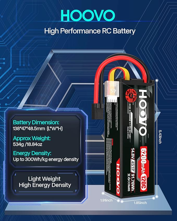 About This 【High Performance】- HOOVO 4S Lipo battery Hard Case, High capacity, Long Cycle Life (150 times at least), up... Read more