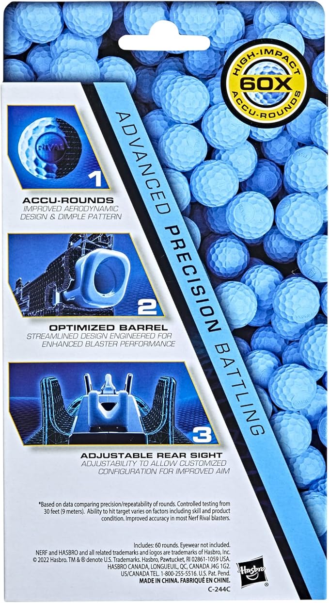 About This THE MOST ACCURATE NERF RIVAL ROUNDS*: These Nerf Rival Accu-Rounds feature an enhanced aerodynamic design and dimple pattern... Read more