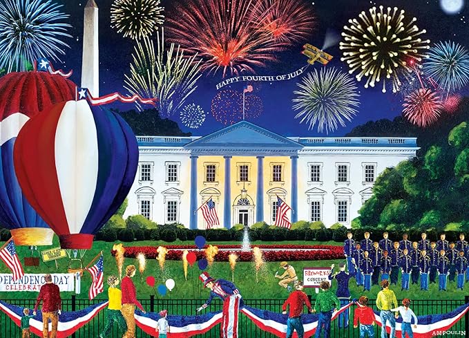 Masterpieces - 500 Piece Jigsaw Puzzle, Large EZ Grip Shapes, White House Fireworks, Fun for Adults, Seniors, Family, Kids, 19.25" x 26.75"