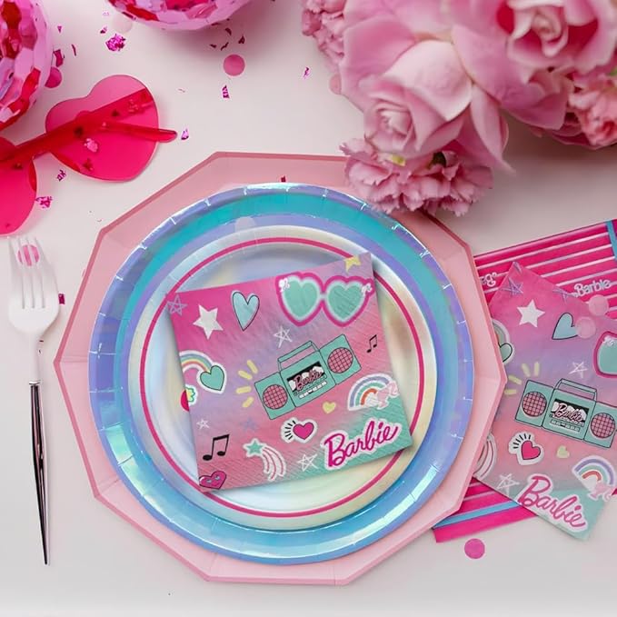 Multicolor Barbie Dream Together Beverage Napkins (5" x 5") Pack Of 16 - Adorable & Elegant Design, Soft & Absorbent Paper Napkins - Ideal For Themed Parties, Events & Everyday Use