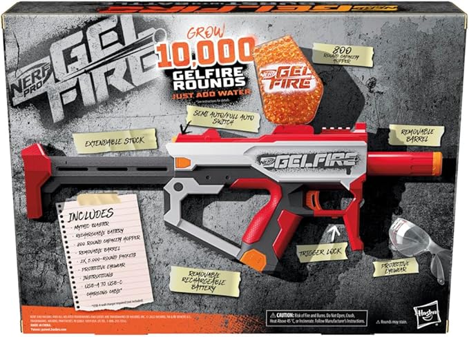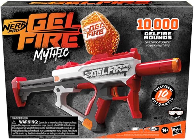 Nerf Pro Gelfire Mythic Full Auto Blaster & 10,000 Gelfire Rounds, 800 Round Hopper, Rechargeable Battery, Eyewear, Ages 14 & Up