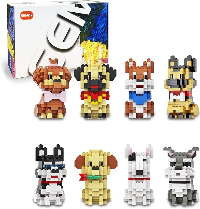 SEMKY Micro Mini Blocks Dog Series Pets Dog 8 in 1 Animal Model Set,(1616Pieces) -Building and Pet Toys Gifts for Kid and Adult