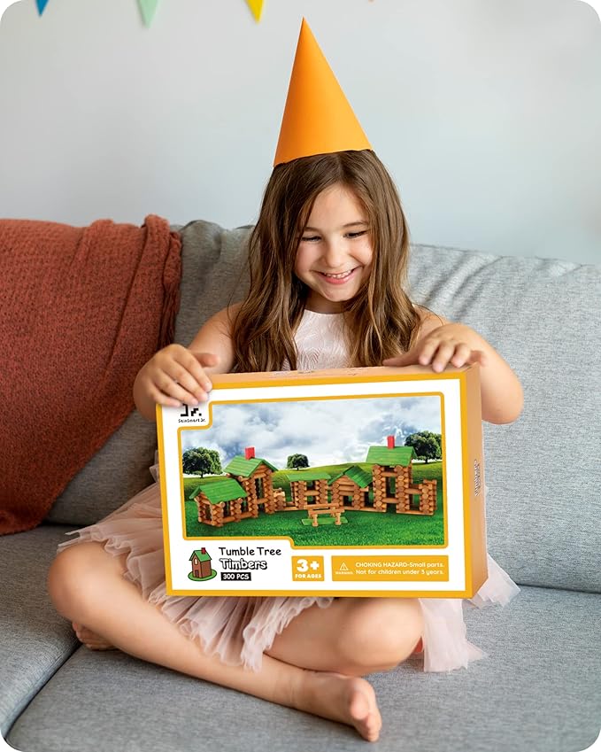 About This SAFE WOODEN BLOCKS: Made of natural birch wood and stained with non-toxic water-based paint, the cabin logs have... Read more