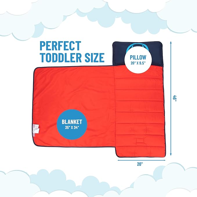 Jay Franco Kids Nap Mat with Embedded Pillow & Blanket – Soft 46"x20" Microfiber Sleeping Bag with Name Tag & Handle