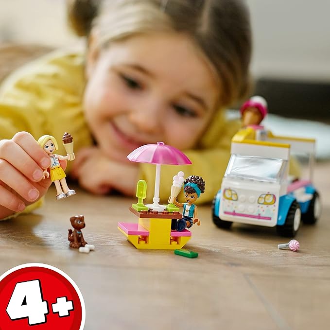 LEGO Friends Ice-Cream Truck Building Toy Pretend Play Gift for Kids Girls Boys Ages 4 and Up, Featuring Toy Van, Andrea & Roxy Mini-Dolls, Toy Dog and Accessories, 41715