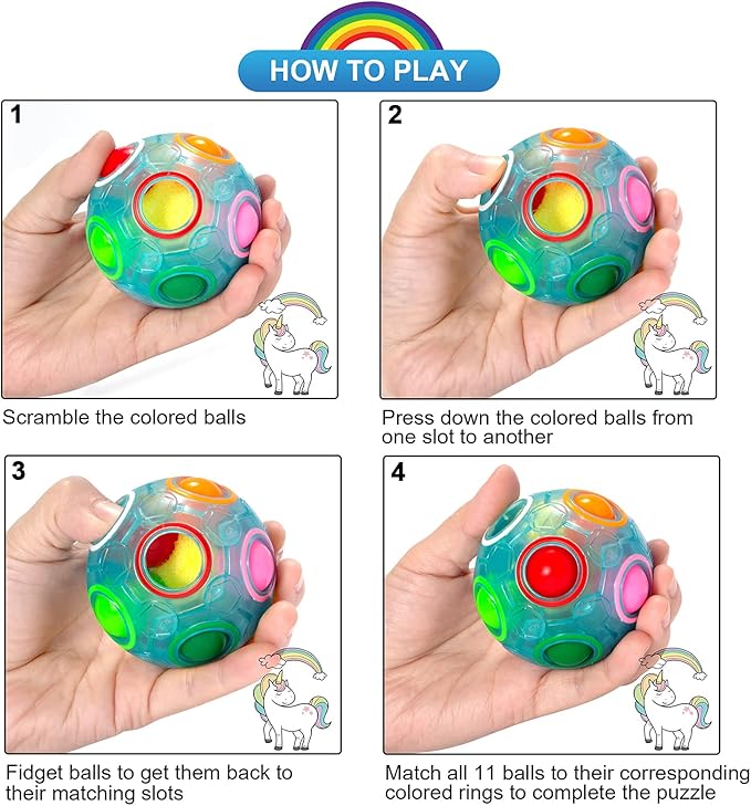 Vdealen Magic Rainbow Puzzle Ball, Fidget Ball Puzzle Brain Teaser Fidget Toy for Boys & Girls- Birthday Party Easter Valentines Christmas Stocking Stuffers for Kids Teen & Adults-2 Pack