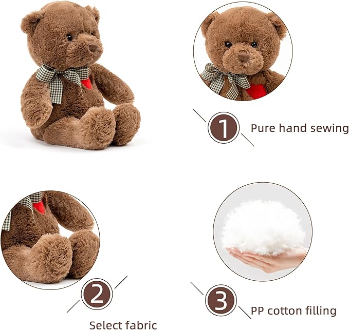 15”Teddy Bear with Heart Cute Brown Teddy Bear Stuffed Animals for Valentines Day Soft Stuffed Bear Plush Bear Plushie Toys Gifts for Girlfriend Boyfriend Kid.