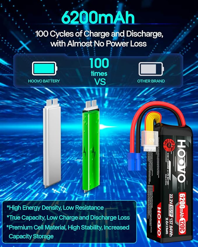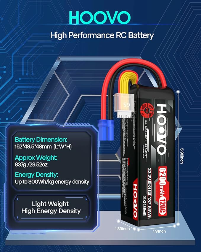 HOOVO 6S LiPo Battery 22.2V 6200mAh 120C with EC5 Plug Softcase RC Battery for RC Car Truck Boat RC Airplane Helicopter RC Vehicle