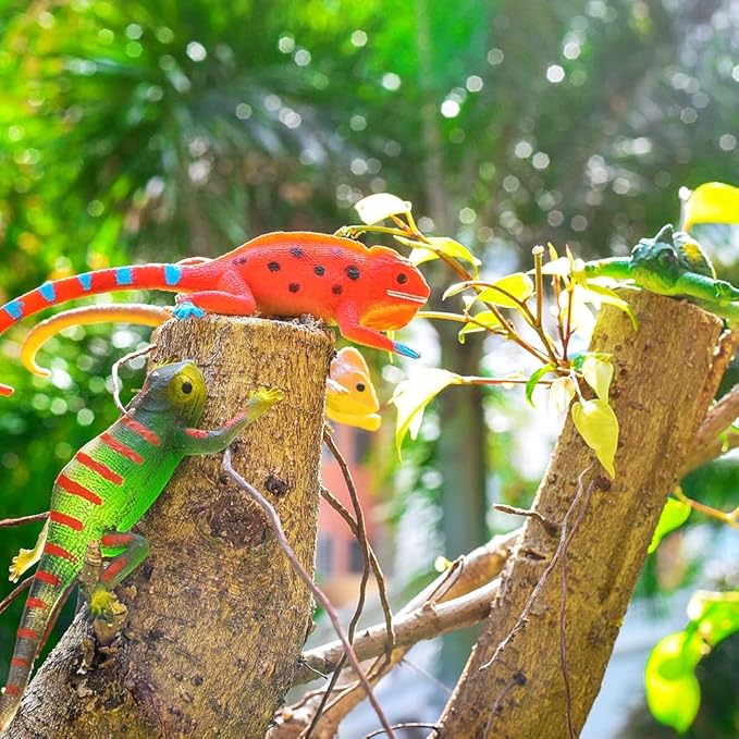 10PCS Lizard Animal Figurines, Color Changing Chameleon Toy, Stretchy Realistic Reptile Playset, for Kids 3 Years and up, Novel Gag Toy, for Goodie Bag Fillers,Cake Topper, Easter Egg Stuffing