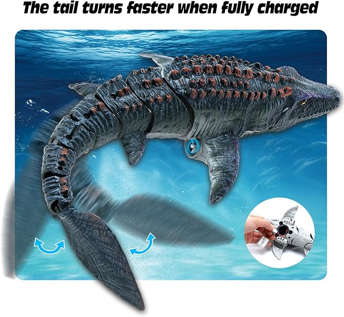 Remote Control Dinosaur Toys for Kids 3 4 5 6 7, Mosasaurus Diving Toys RC Boat with Light and Spray Water for Swimming Pool Lake Bathroom Ocean Protector Bath Toys