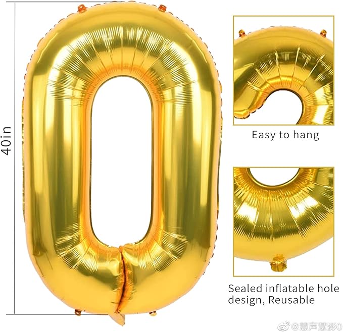 Smlpuame 40 inch Number Balloon 0-9 Gold Large Number 30 Balloons,Digital Balloons for Birthday Party Celebration Decorations Supplies, Helium Foil Number Balloons for Wedding Anniversary